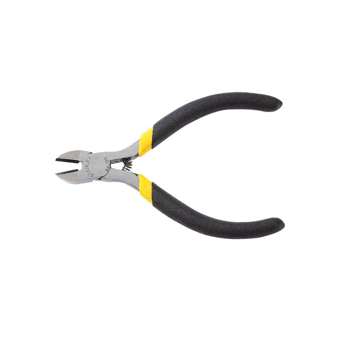 Alicate de corte diagonal compacto de 4 pulgadas. Ideal para electrónica, joyería y modelismo. Su tamaño permite un corte fino y preciso de alambres delgados y componentes en espacios reducidos.