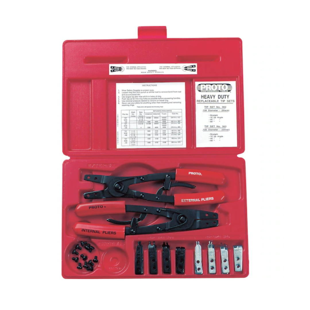 Juego de pinzas para pines de 9,1/2 pulgadas, ideales para trabajar con anillos de retención internos o externos. Fabricadas en acero de alta resistencia, ofrecen precisión, durabilidad y agarre cómodo para trabajos mecánicos, automotrices o industriales. Herramienta esencial en cualquier caja de herramientas profesional.