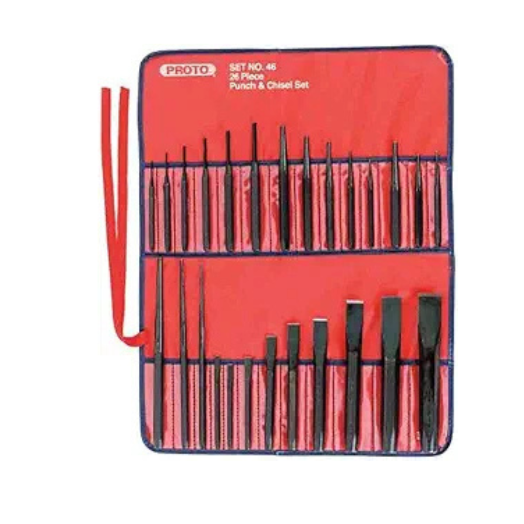 Este juego profesional incluye 26 piezas entre botadores, cinceles planos, de punta y otras variantes, fabricadas en acero templado de alta calidad para soportar trabajos exigentes. Diseñado para corte, marcado, extracción de pernos, remaches y trabajos sobre metal o concreto, ofrece precisión, durabilidad y un excelente rendimiento. Ideal para talleres mecánicos, herrería, construcción y mantenimiento industrial.